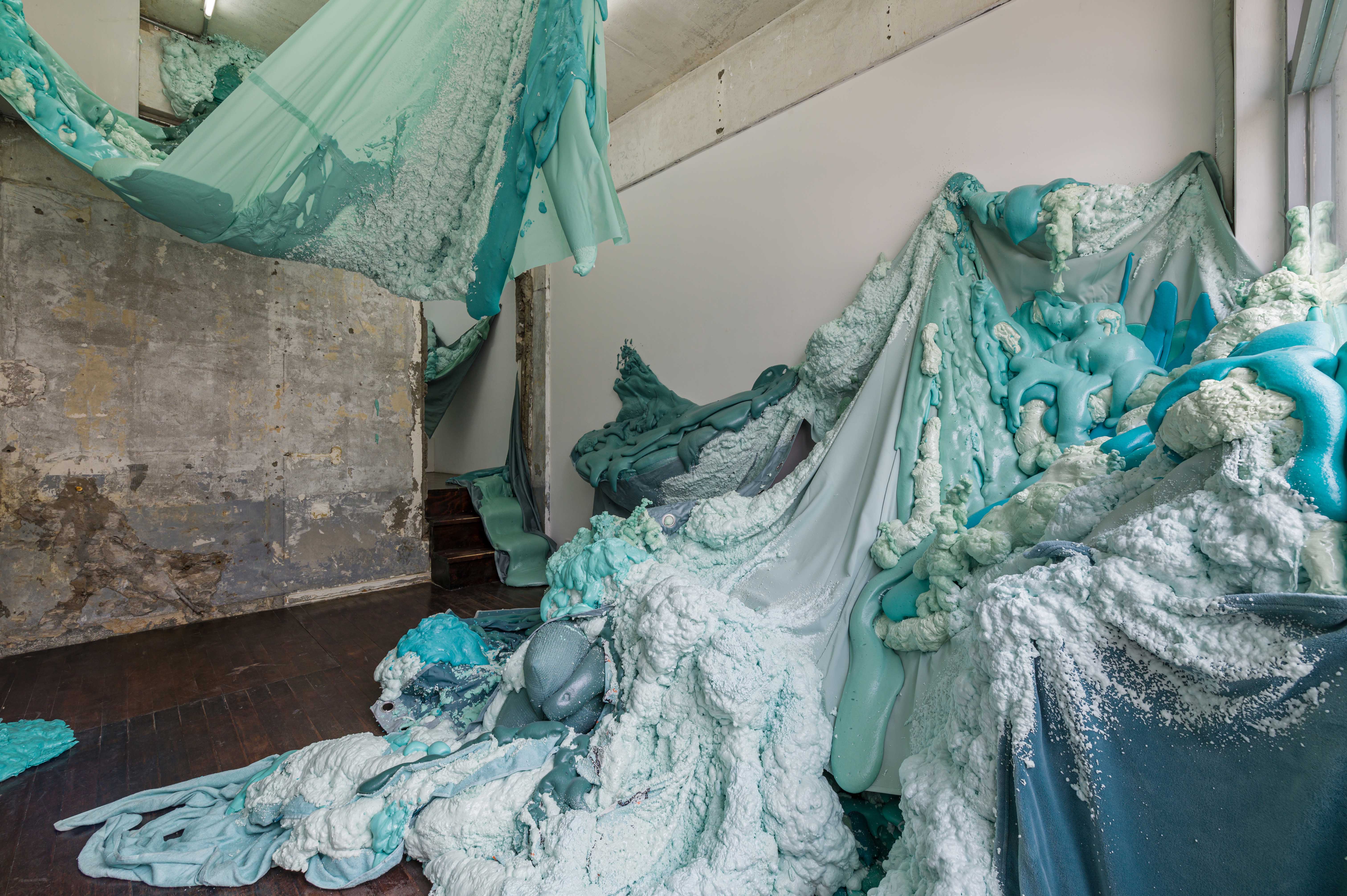 (도 5) 최태훈, 〈살(SAL)-P2〉, 2023, 우레탄 폼, 담요, 커튼, 매트, 베개 커버, 370×335×964.5cm, 사진=김진솔 ©최태훈 |